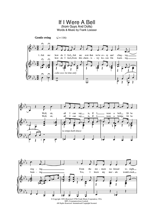"If I Were A Bell" Sheet Music by Frank Loesser