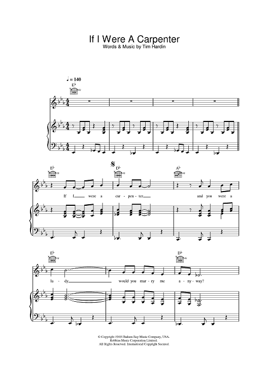 Digital Sheet Music for If I Were A Carpenter by Bobby Darin, Tim Hardin scored for Piano/Vocal/Chords; id:383886