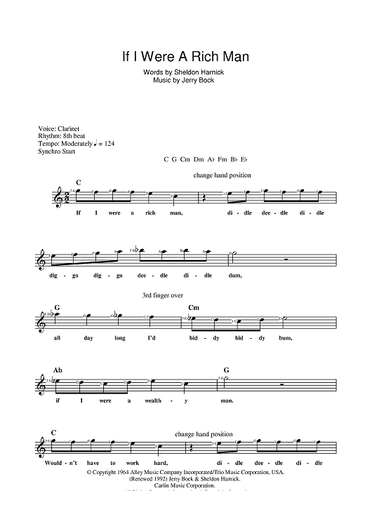 "If I Were A Rich Man" Sheet Music by Jerry Bock