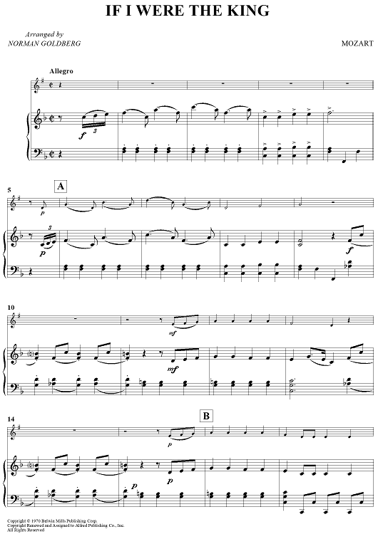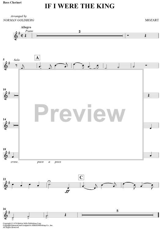 Digital Sheet Music for If I Were The King by Wolfgang Amadeus Mozart, Norman Goldberg scored for Bb Bass Clarinet/Piano; id:437413