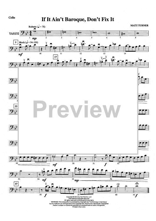 Digital Sheet Music for If It Ain't Baroque, Don't Fix It - Cello by Matt Turner scored for String Orchestra; id:444002