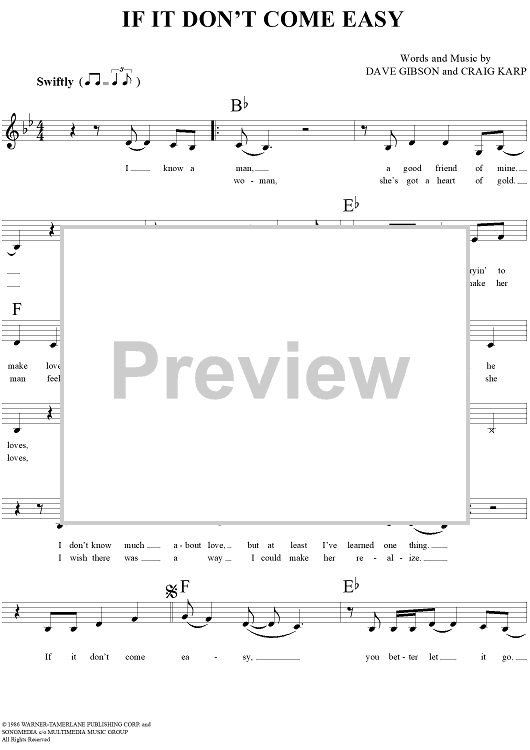 Digital Sheet Music for If It Don't Come Easy by Tanya Tucker, Dave Gibson, Craig Karp scored for Lead Sheet; id:121003