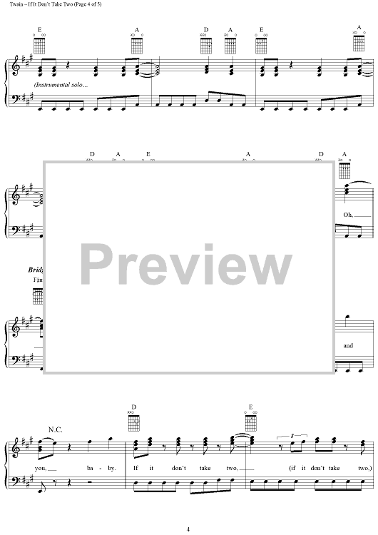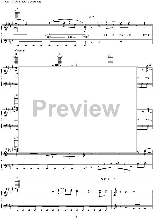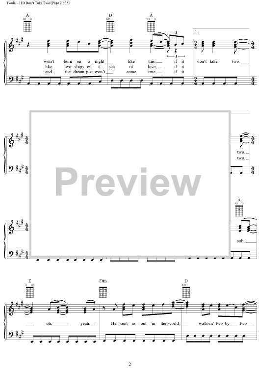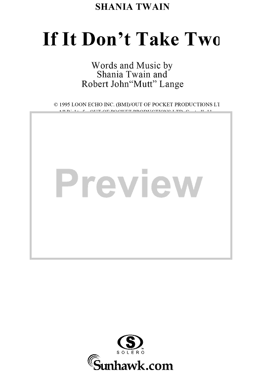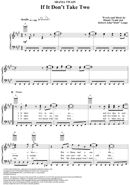 Digital Sheet Music for If It Don't Take Two by Shania Twain, Robert Lange scored for Piano/Vocal/Chords; id:112053