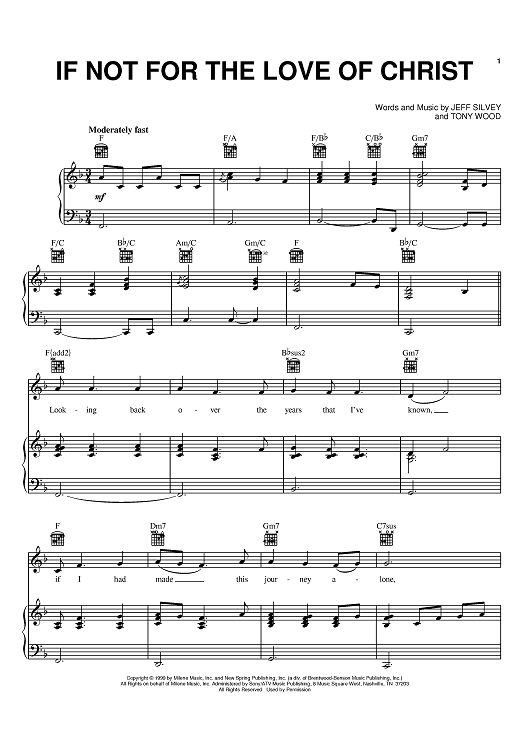 Digital Sheet Music for If Not For The Love Of Christ by Jeff Silvey, Tony Wood scored for Piano/Vocal/Chords; id:369074