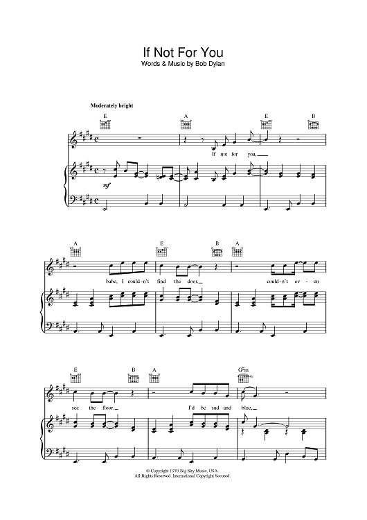 Digital Sheet Music for If Not For You by Bob Dylan scored for Piano/Vocal/Chords; id:388690