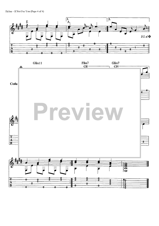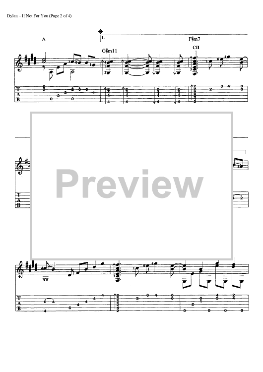 Digital Sheet Music for If Not For You by Bob Dylan scored for Guitar Tab/Chords; id:447163