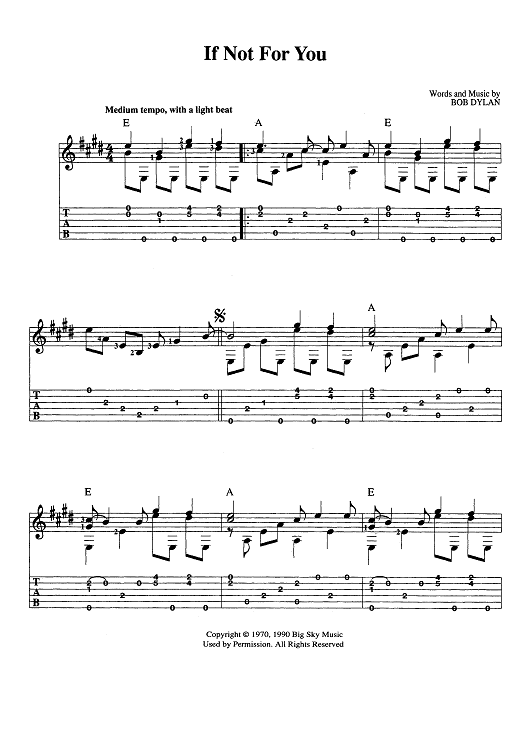 "If Not For You" Sheet Music by Bob Dylan