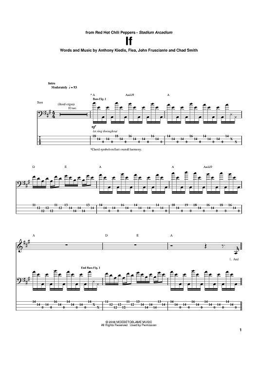 Digital Sheet Music for If by Flea, John Frusciante, Anthony Kiedis, Red Hot Chili Peppers, Chad Smith scored for Bass Tab; id:391994
