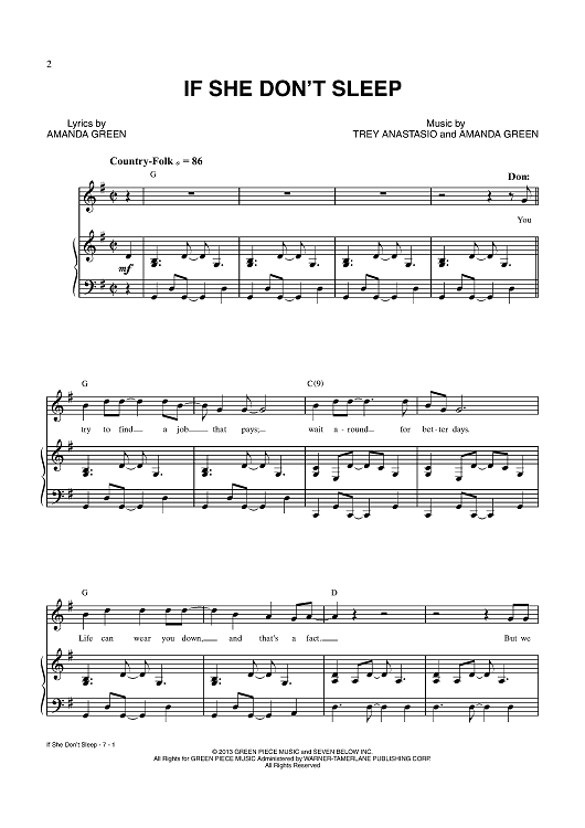 Digital Sheet Music for If She Don't Sleep by Trey Anastasio, Amanda Green scored for Piano/Vocal/Chords; id:438533