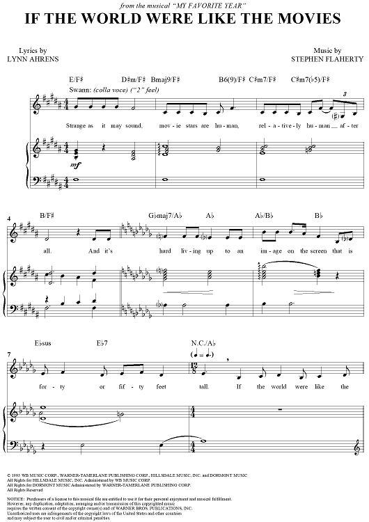 Digital Sheet Music for If the World Were Like the Movies by Stephen Flaherty, Lynn Ahrens scored for Piano/Vocal/Chords; id:288472
