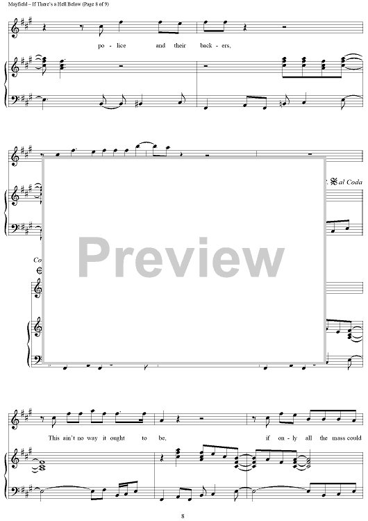 Digital Sheet Music for If There's a Hell Below by Curtis Mayfield scored for Piano/Vocal/Chords; id:187734