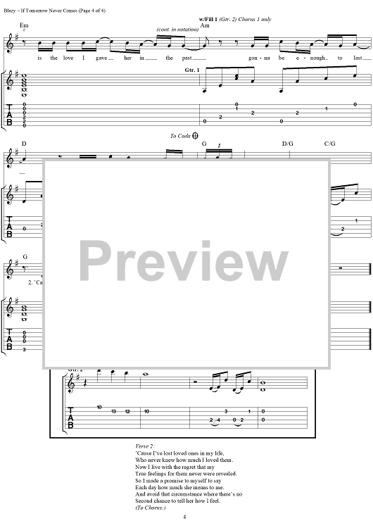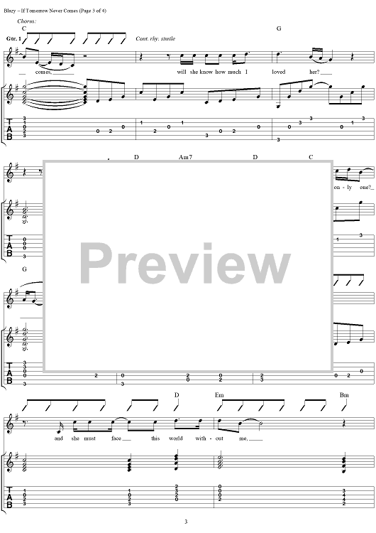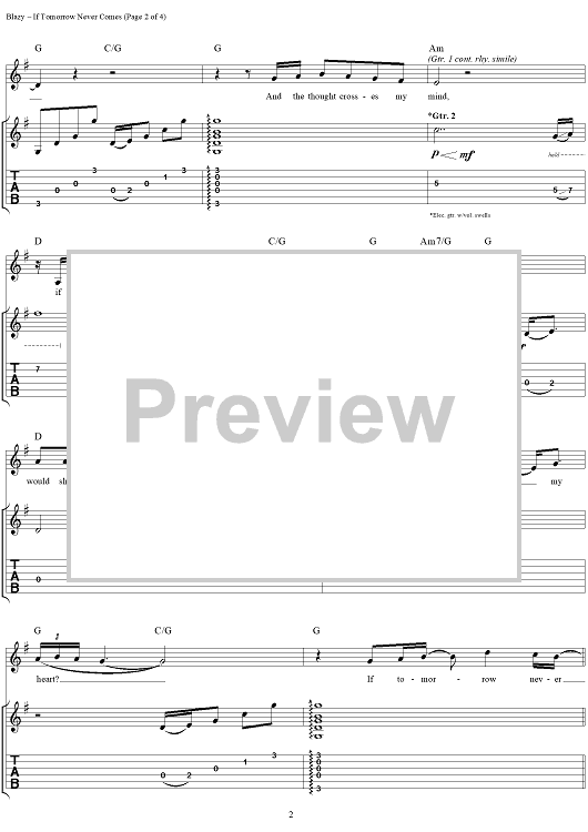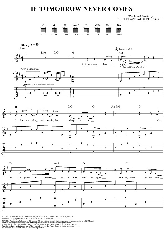 Digital Sheet Music for If Tomorrow Never Comes by Garth Brooks, Kent Blazy scored for Guitar Tab/Vocal; id:116118