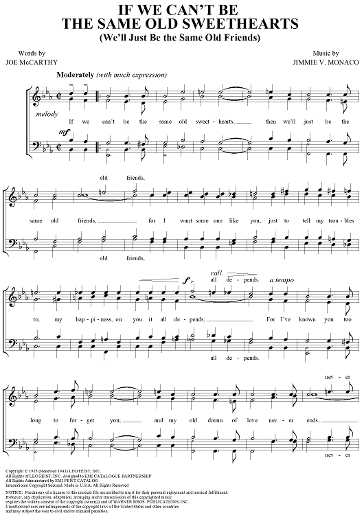 Digital Sheet Music for If We Can't Be the Same Old Sweethearts by James V. Monaco, Joe McCarthy scored for Barbershop Quartet; id:240647