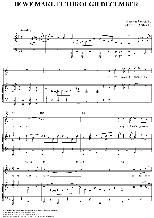Digital Sheet Music for If We Make It through December by Merle Haggard scored for Piano/Vocal/Chords; id:362864