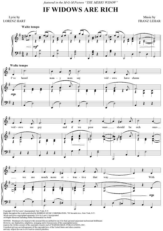 Digital Sheet Music for If Widows Are Rich by Lorenz Hart, Franz Lehár scored for Piano/Vocal; id:356033