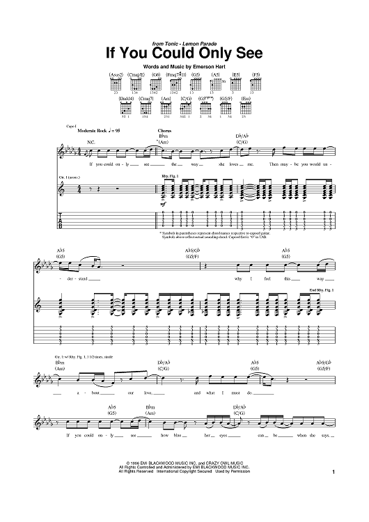 Digital Sheet Music for If You Could Only See by Emerson Hart, Tonic scored for Guitar Tab; id:370973