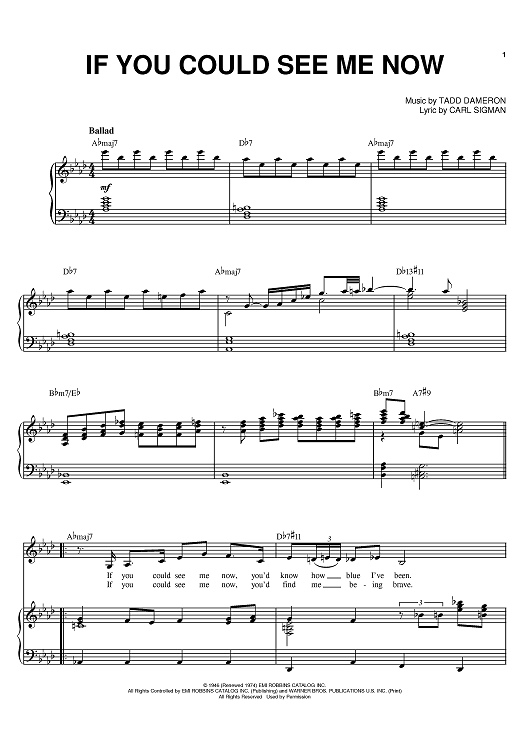 Digital Sheet Music for If You Could See Me Now by Carl Sigman, Bill Evans, Sarah Vaughan, Tadd Dameron scored for Piano/Vocal/Chords; id:380435
