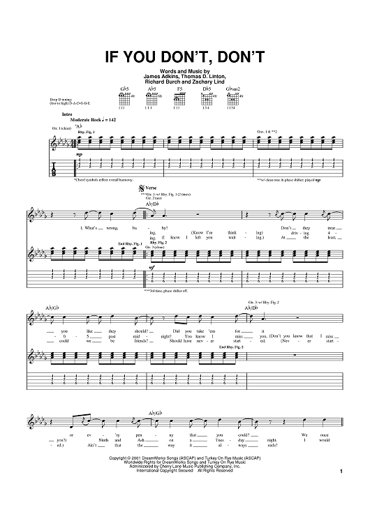 Digital Sheet Music for If You Don't, Don't by James Adkins, Richard Burch, Jimmy Eat World, Tom Linton scored for Guitar Tab; id:369849