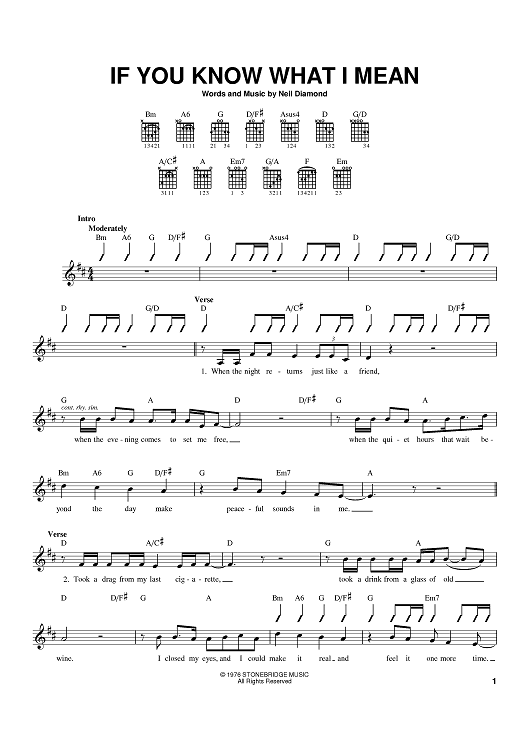 "If You Know What I Mean" Sheet Music by Neil Diamond