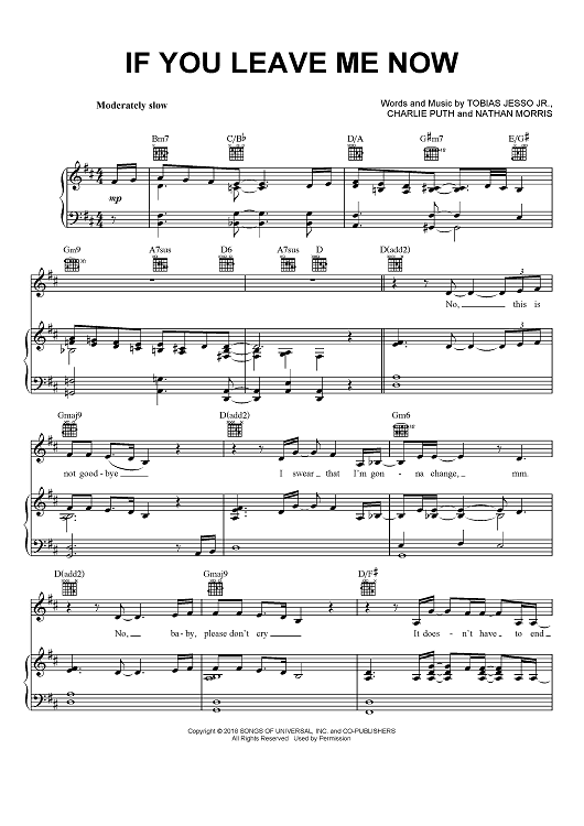 Digital Sheet Music for If You Leave Me Now by Jonathan Rotem, Charlie Puth, Alexander Izquierdo, James Abrahart, Marco Rodriguez scored for Piano/Vocal/Chords; id:466054