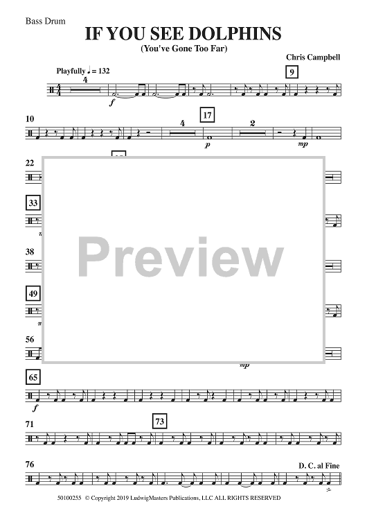Digital Sheet Music for If You See Dolphins (You've Gone Too Far) - Bass Drum by Chris Campbell scored for Concert Band; id:509107