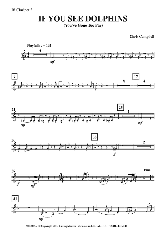 "If You See Dolphins (You've Gone Too Far) - Bb Clarinet 3" Sheet Music by Chris Campbell