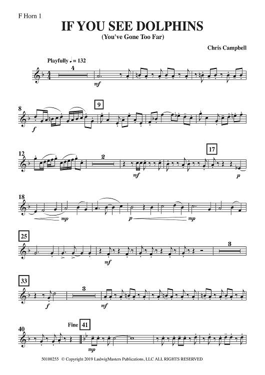 Digital Sheet Music for If You See Dolphins (You've Gone Too Far) - F Horn 1 by Chris Campbell scored for Concert Band; id:509100