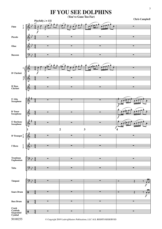 Digital Sheet Music for If You See Dolphins (You've Gone Too Far) - Full Score by Chris Campbell scored for Concert Band; id:509085