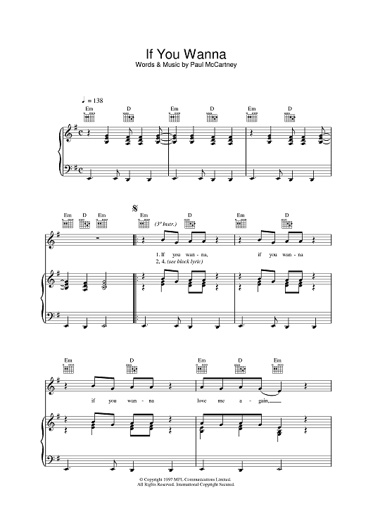 Digital Sheet Music for If You Wanna by Paul McCartney scored for Piano/Vocal/Chords; id:389242