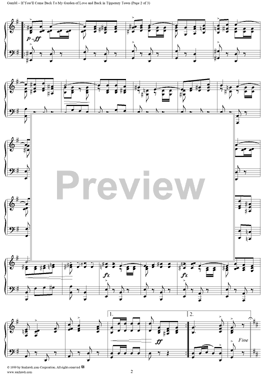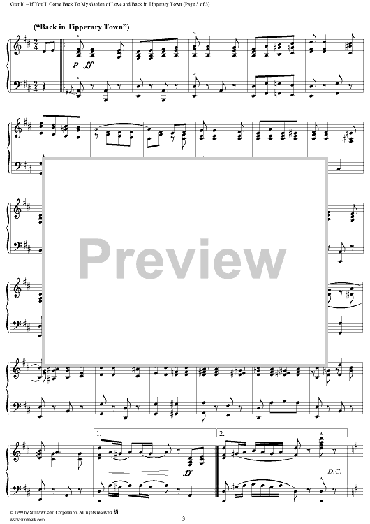 Digital Sheet Music for If You"ll Come Back To My Garden Of Love / Back In Tipperary Town medley by Albert Gumble scored for Piano/Vocal; id:267991