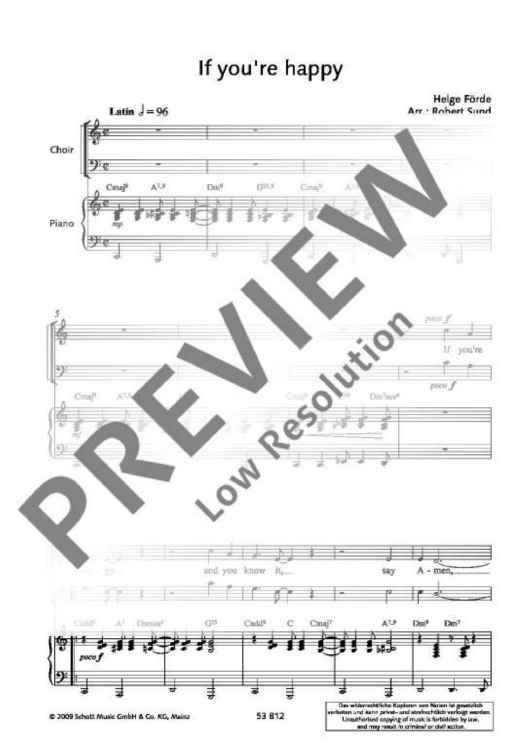 The popular song 'If you're happy' is now available in a single edition for the first time! The Norwegian composer Helge Förde has managed to write an international choral music hit, the evocative Latin gospel 'If you’re happy' for mixed a-cappella choir. The song can be easily mastered by gospel, amateur or school choirs of any age group and will provide a lot of fun to singers. The Swedish composer and conductor Robert Sund has written a melodious piano accompaniment which is easy to play. 'If you're happy' is perfect as an effective encore which will certainly enthuse the audience.