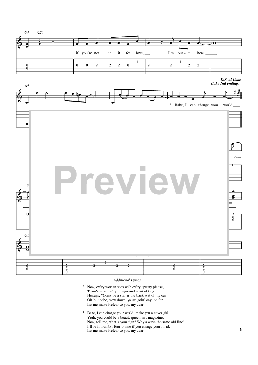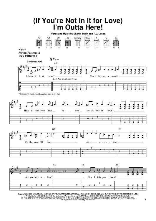 Digital Sheet Music for (If You're Not In It For Love) I'm Outta Here! by Shania Twain, Robert Lange scored for Easy Guitar Tab; id:383591