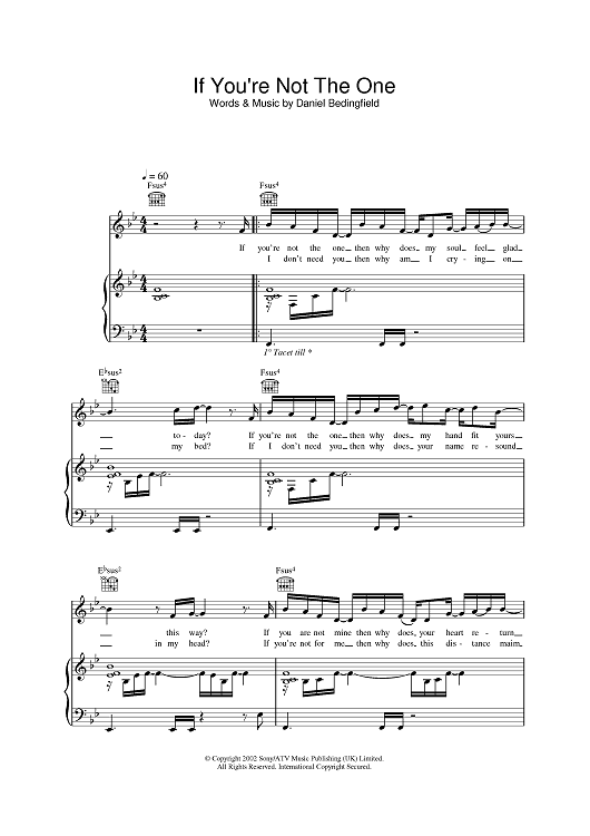 Digital Sheet Music for If You're Not The One by Daniel Bedingfield scored for Piano/Vocal/Chords; id:394247
