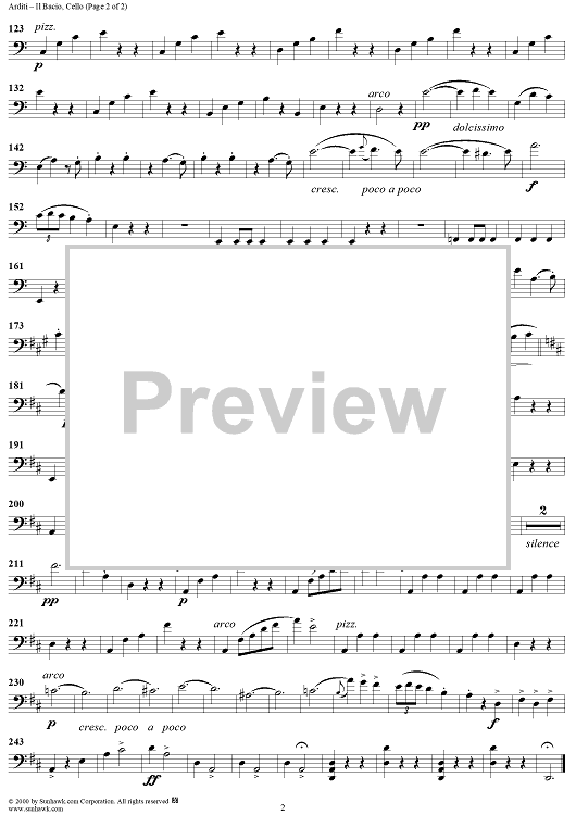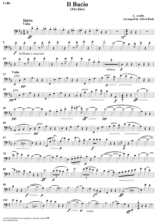 "Il Bacio - Cello" Sheet Music by Luigi Arditi