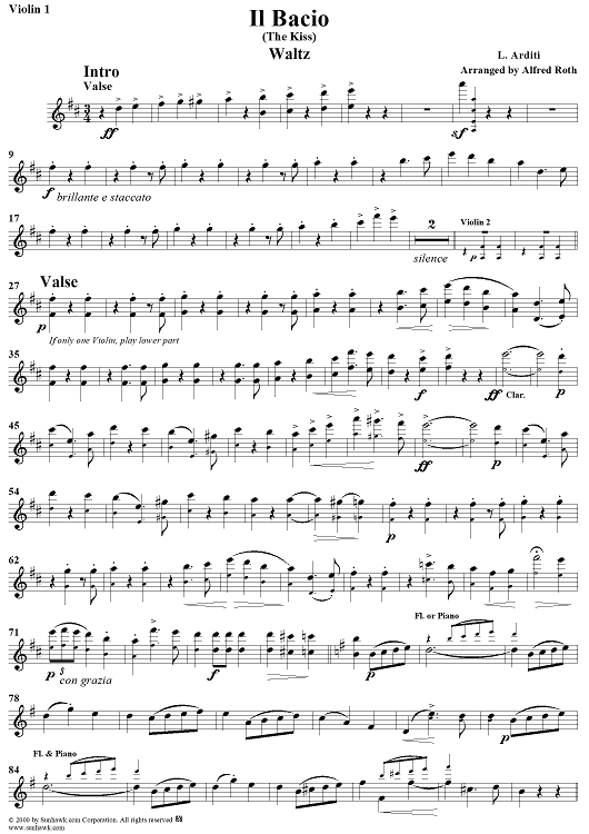 "Il Bacio - Violin 1" Sheet Music by Luigi Arditi