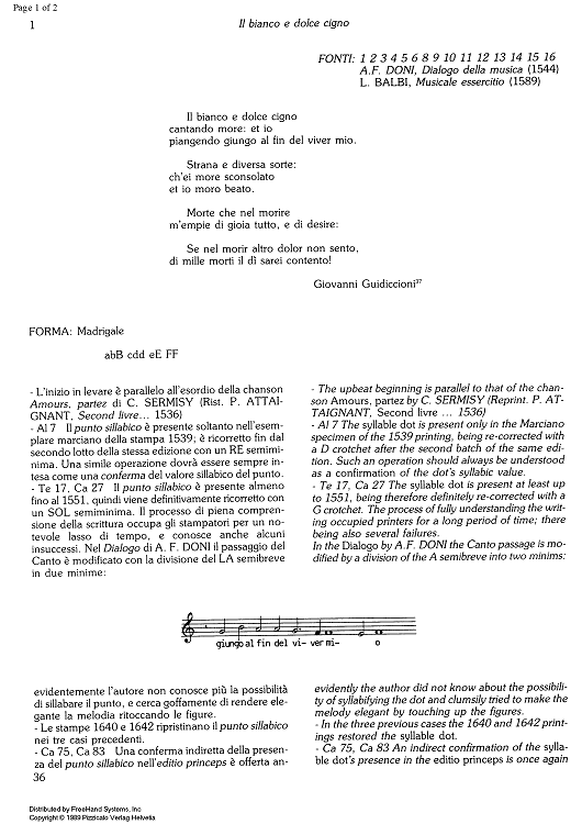 "Il Bianco e dolce cigno from 20 Madrigali - Notes" Sheet Music by Jacques Arcadelt