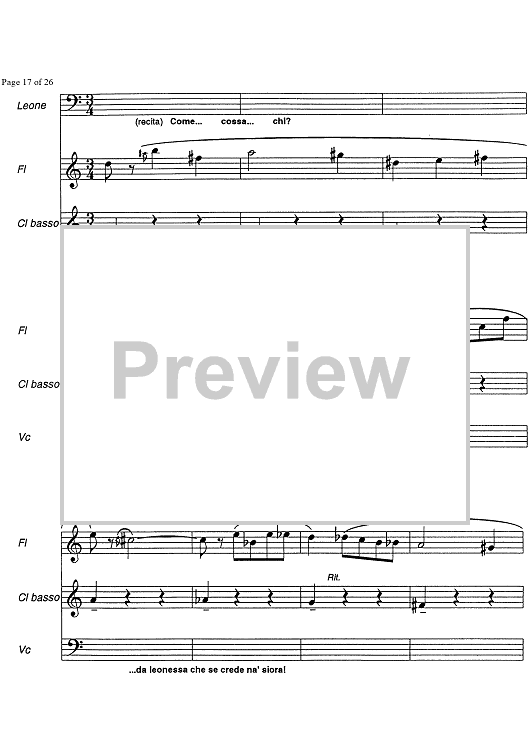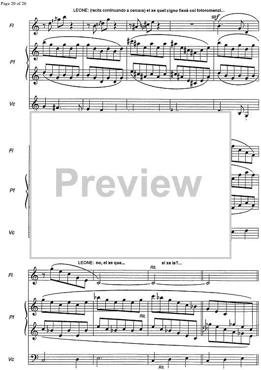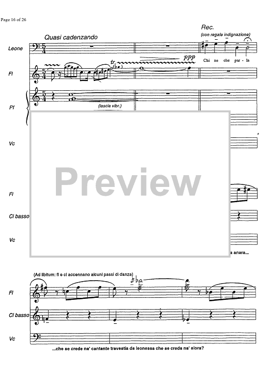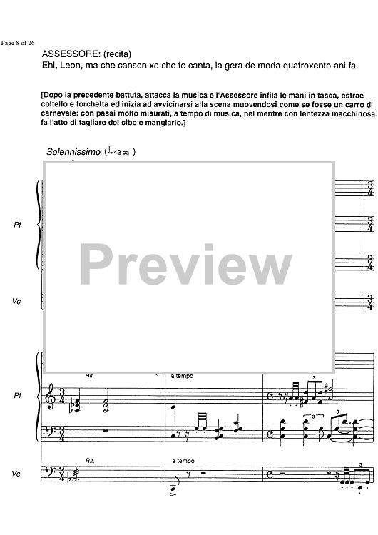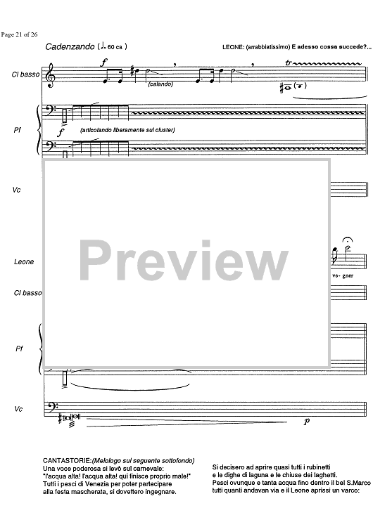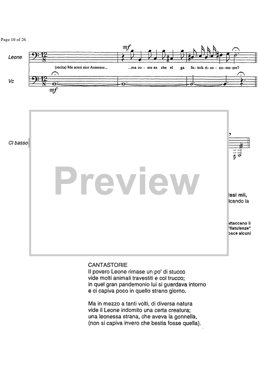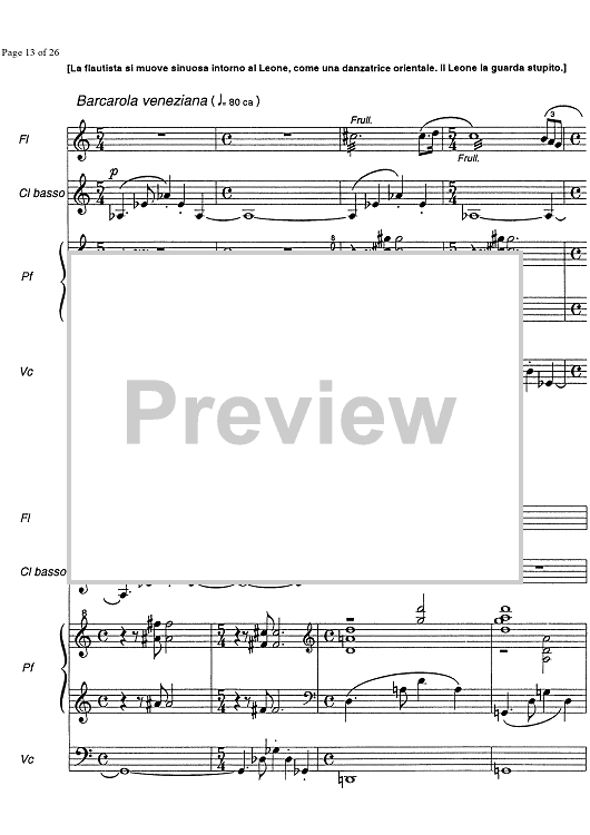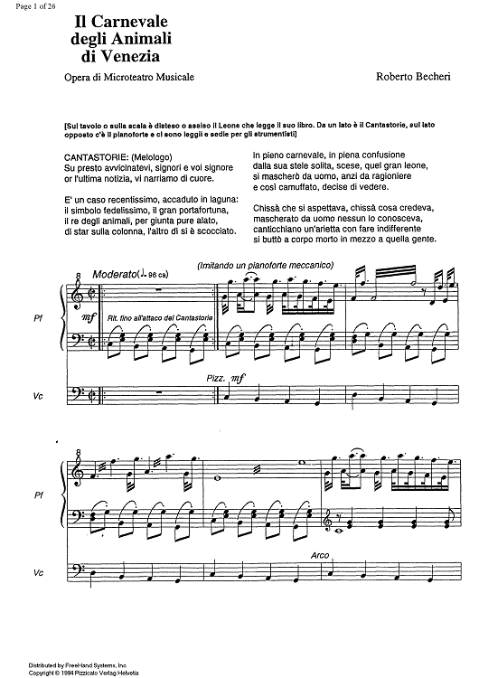 Digital Sheet Music for Il Carnevale degli animali di Venezia - Score by , Roberto Becheri scored for Baritone/Flute/Cello/Bass Clarinet/Piano; id:335727