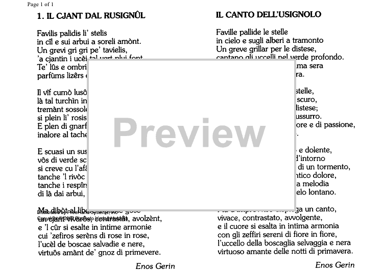 "Il Cjant das rusignûl - Lyrics" Sheet Music by Orlando Dipiazza