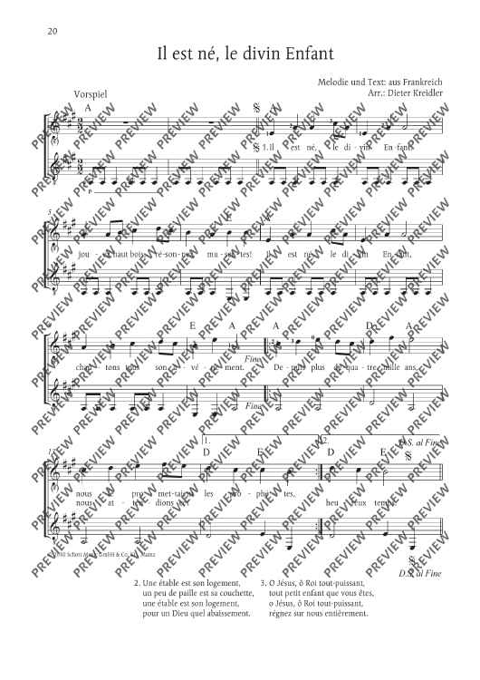 Digital Sheet Music for Il est né, le divin Enfant by Dieter Kreidler scored for 1-3 Guitars (melody Instruments In C Ad Lib.); id:481747