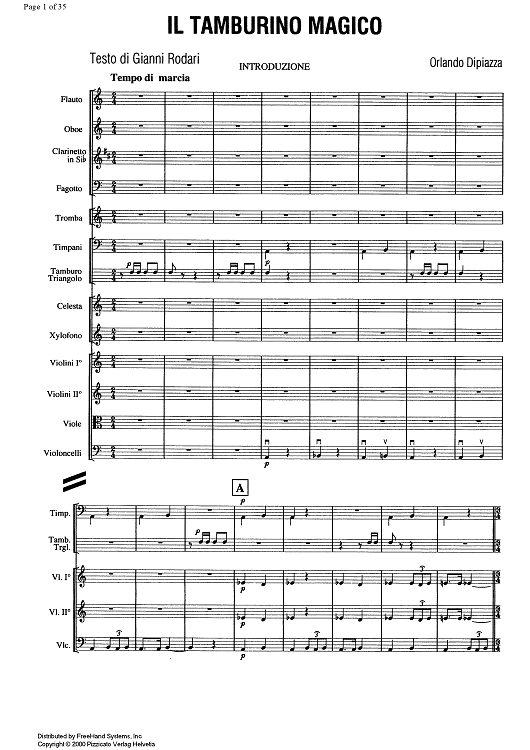 Digital Sheet Music for Il tamburo magico - The magical tambourin [orchestral score] - Full Score by , Orlando Dipiazza scored for Orchestra; id:354326