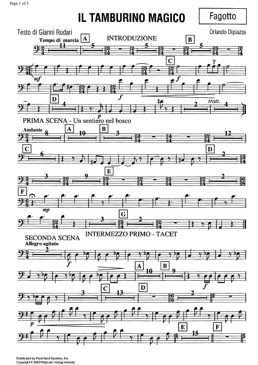 Digital Sheet Music for Il tamburo magico - The magical tambourin [set of parts] - Bassoon by Orlando Dipiazza scored for Orchestra; id:354315