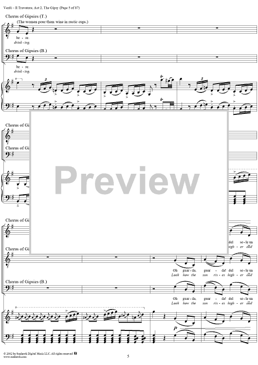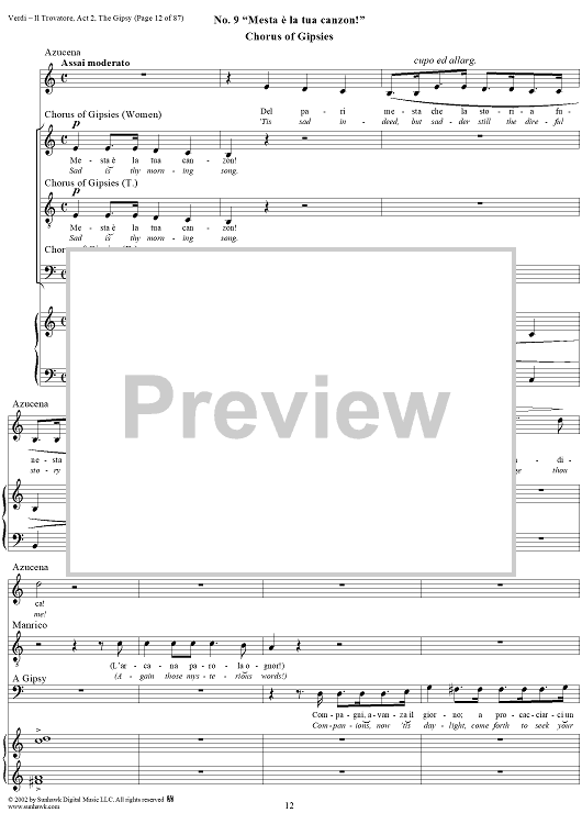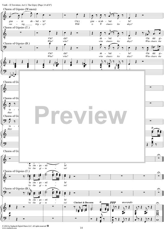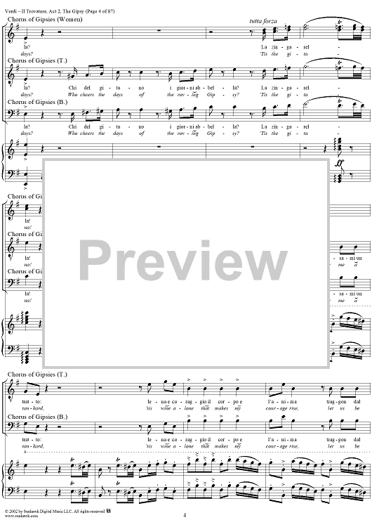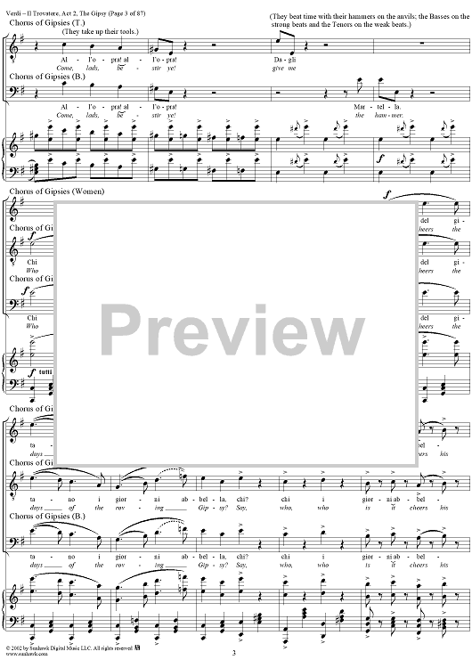Digital Sheet Music for Il Trovatore, Act 2, The Gypsy by Giuseppe Verdi, Salvadore Cammarano scored for Vocal Score; id:265074