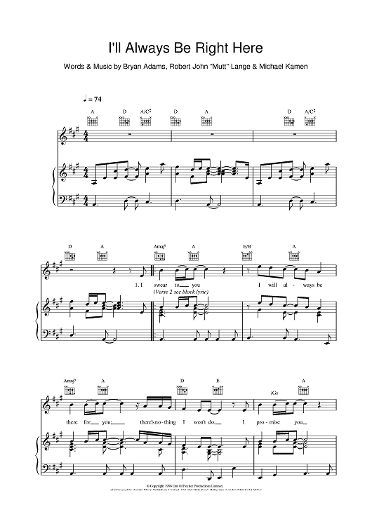 Digital Sheet Music for I'll Always Be Right There by Bryan Adams, Robert Lange scored for Piano/Vocal/Chords; id:379759