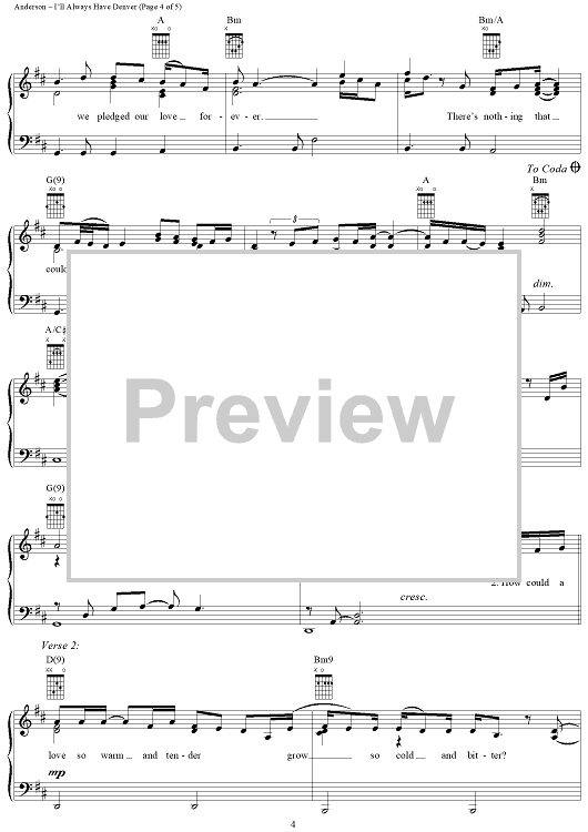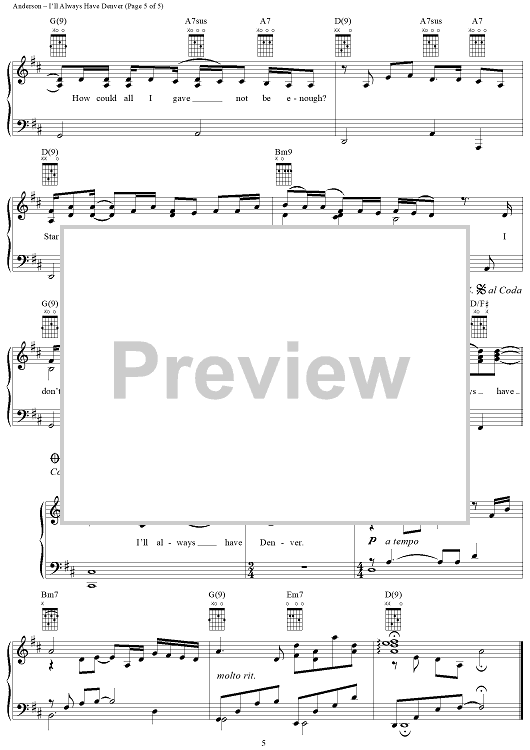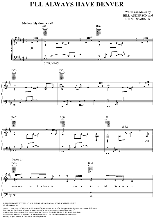 Digital Sheet Music for I'll Always Have Denver by Steve Wariner, Bill Anderson scored for Piano/Vocal/Chords; id:203902