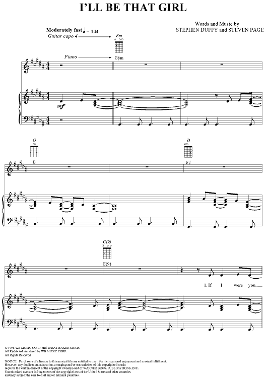 Digital Sheet Music for I'll Be That Girl by Steven Page, Stephen Duffy, Barenaked Ladies scored for Piano/Vocal/Chords; id:119772