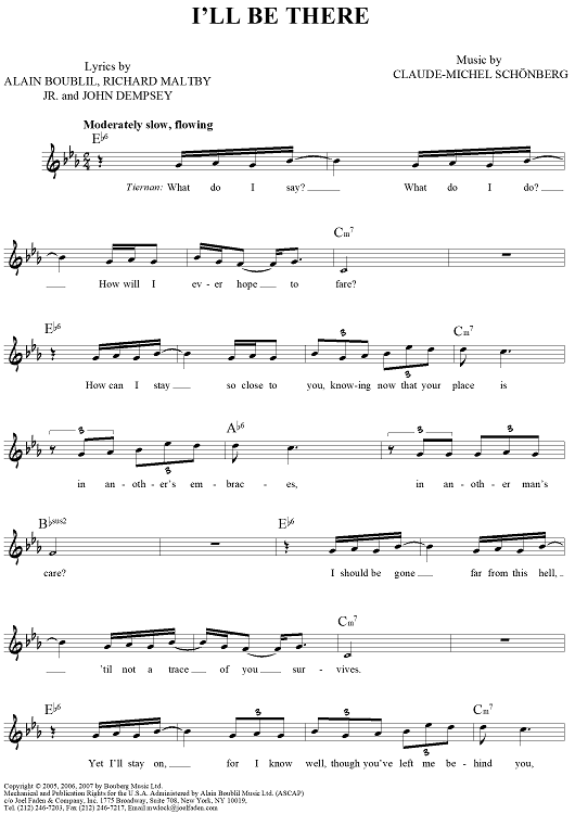 "I'll Be There" Sheet Music by Claude-Michel Schonberg