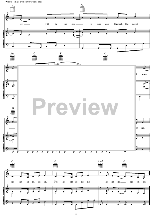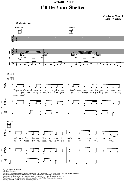 Digital Sheet Music for I'll Be Your Shelter by Diane Warren, Taylor Dayne scored for Piano/Vocal/Chords; id:110804