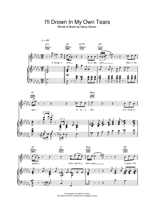 Digital Sheet Music for I'll Drown In My Own Tears by Henry Glover, Ray Charles scored for Piano/Vocal/Chords; id:383390