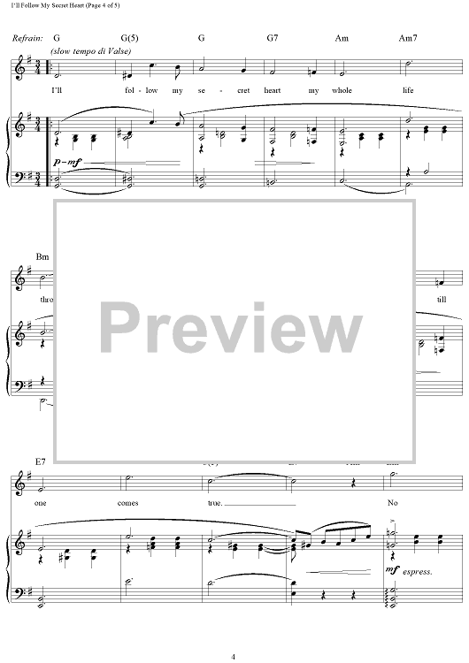 Digital Sheet Music for I'll Follow My Secret Heart by Noel Coward scored for Piano/Vocal/Chords; id:288017