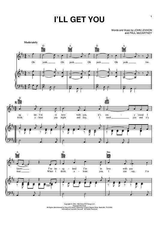 Digital Sheet Music for I'll Get You by Paul McCartney, The Beatles, John Lennon scored for Piano/Vocal/Chords; id:394797